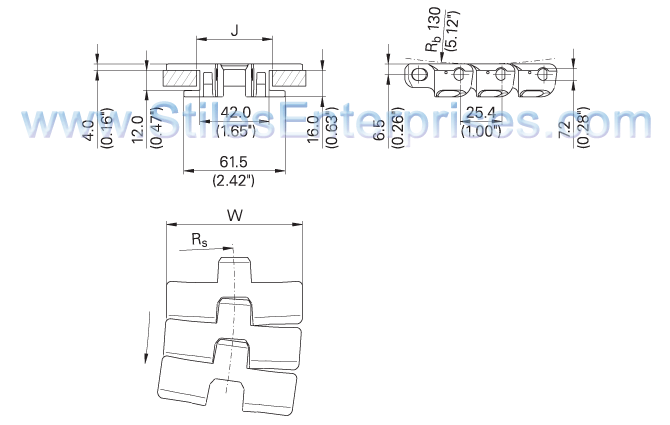 requires a tight turn. The smaller 1" (25.4 mm) pitch enables the use of shorter dead plates for product transfer.