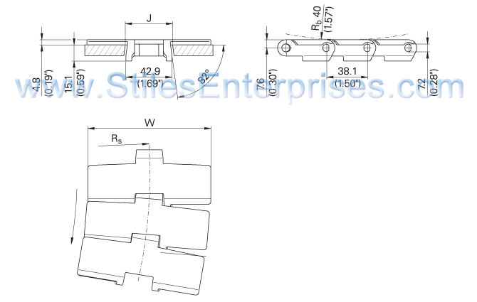 879B Radius Slat Top ChainSlat Top 879B chain is a beveled standard duty radius and straight running plastic chain. Top plate thickness is 4.8mm. Applications include dairy, in which removal of chain from the track is critical for cleanability. Use 879B series for side transfer with 831 series straight chains. ![]() ![]() |