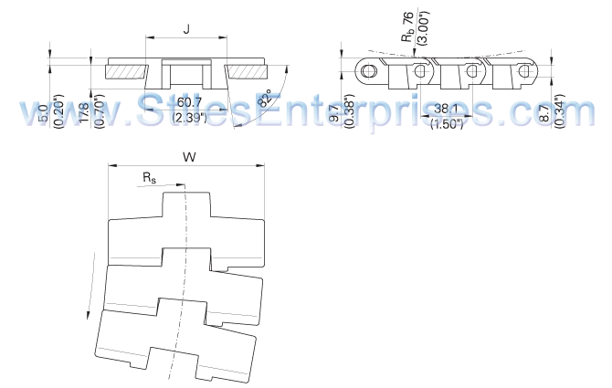 882B Radius Slat Top ChainSlat Top 882B Chain is a beveled heavy duty radius and straight running plastic chain. Top plate thickness is 5 mm. Applications include dairy, in which removal from the track is critical for cleanability. Use 882B series for side transfer with 821 series straight chains.![]() ![]() |